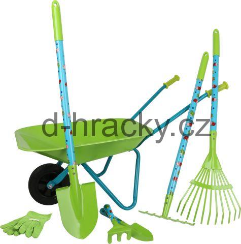 Hurá na zahradu! Mladí zahradkáři Vám rádi pomohou s touto velkou sadou zahradního nářadí. Stačí si nasadit rukavice a mohou začít motykou, hráběmi, rýčem, kolečkem a dalšími nástroji pomáhat a rozvíjet své zahradnické zkušenosti. Všechny díly jsou vyrobeny z vysoce kvalitního, jemně opracovaného kovu a díky svému dětskému designu a jarním barvám potěší každého malého zahrádkáře. Součástí balení je vše dle obrázku.