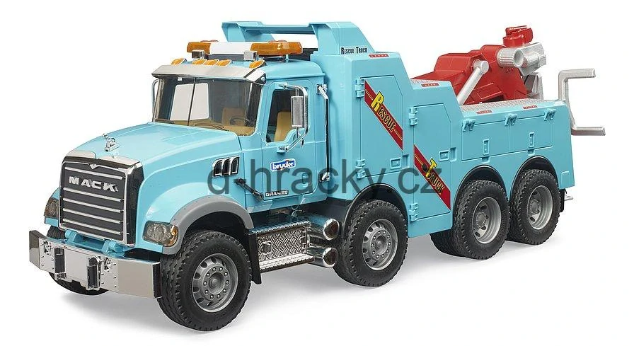 Detailně propracovaná kabina Mack má otevírací dveře a jako doplněk k tomuto všestrannému nákladnímu vozu je již nainstalován nový světelný a zvukový maják 2803 pro nákladní vozidla v nejmodernějším designu. Z široké nabídky produktů BRUDER doplňují tuto novinku v řadě BRUDER například servisní nákladní vozidlo RAM (č. položky 2509), nebo odtahová služba Mercedes Benz Sprinter (č. položky 2675).
